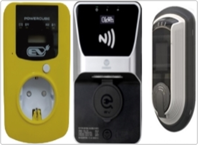 왼쪽부터 파워큐브(매립/노출형), 스타코프(매립/노출형), 차지인(220V 콘센트 부착형)