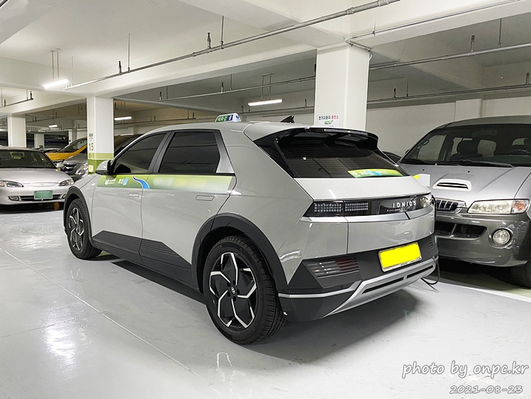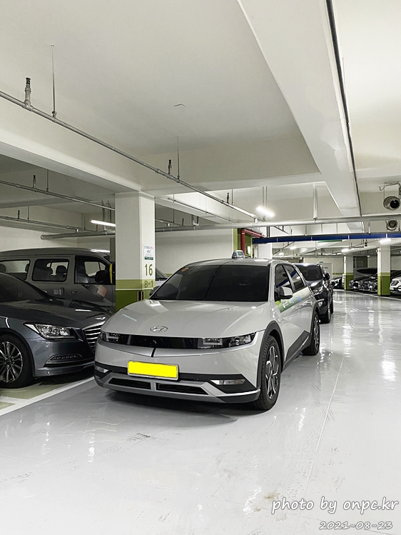 아파트 지하 주차장에 내려가니 앞에 아이오닉5가 보였고 다름 아닌 오~ '아이오닉5 택시'였어요!