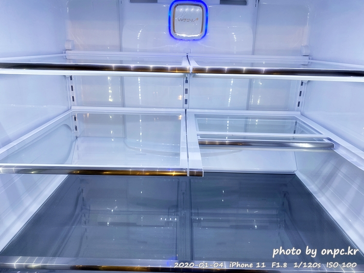 냉장고 문을 달기 전 찍어봤어요. LED 램프의 빛이 환해서 밝아 보이네요~