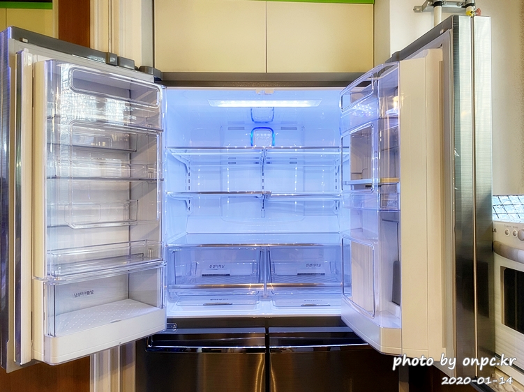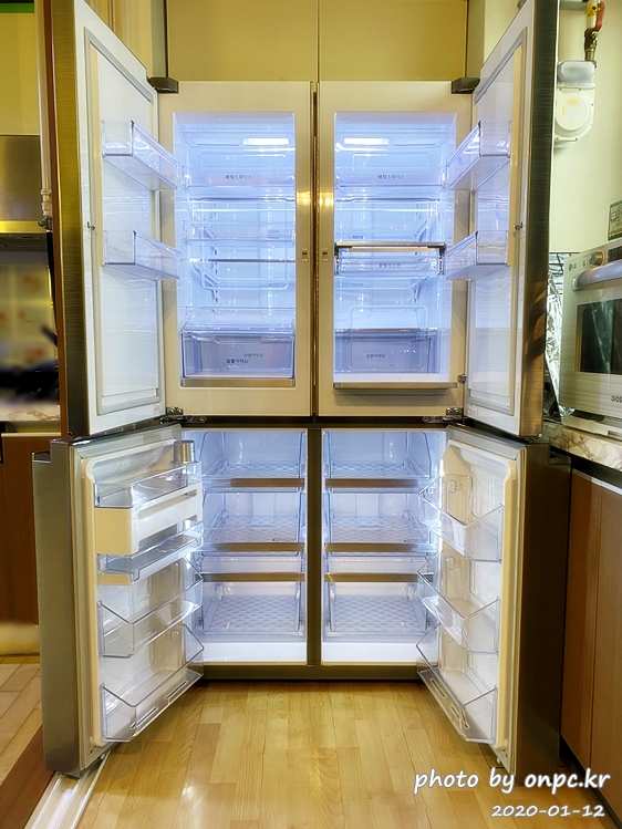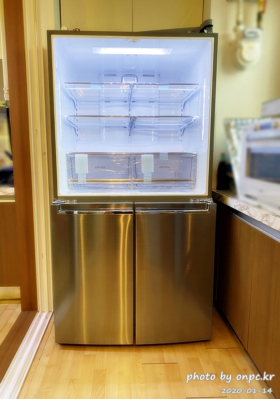 좌 냉동, 우 냉장으로 2도어였는데 새로 구입한 냉장고는 상 냉장, 하 냉동으로 4도어입니다.
