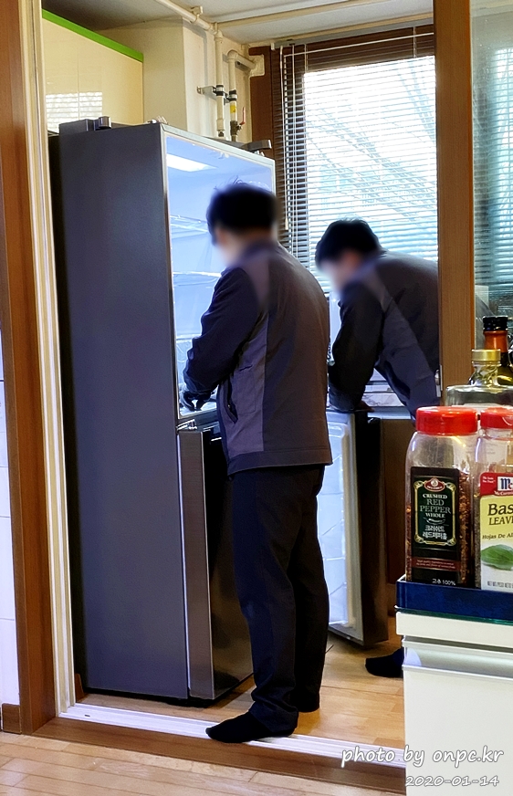 LG전자 배송 기사님들이 새 제품 싣고 와서 폐가전부터 수거하고 자리 확보 후 새 제품 설치해 주십니다.