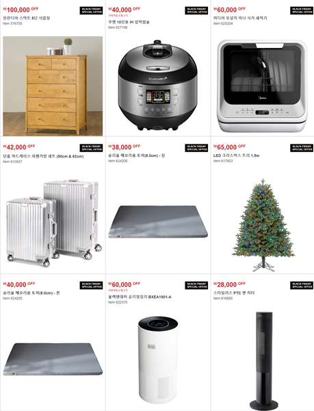 가전 코너에서 가격표 옆에 BLACK FRIDAY 표시가 되어있는 상품만 행사 제품입니다.