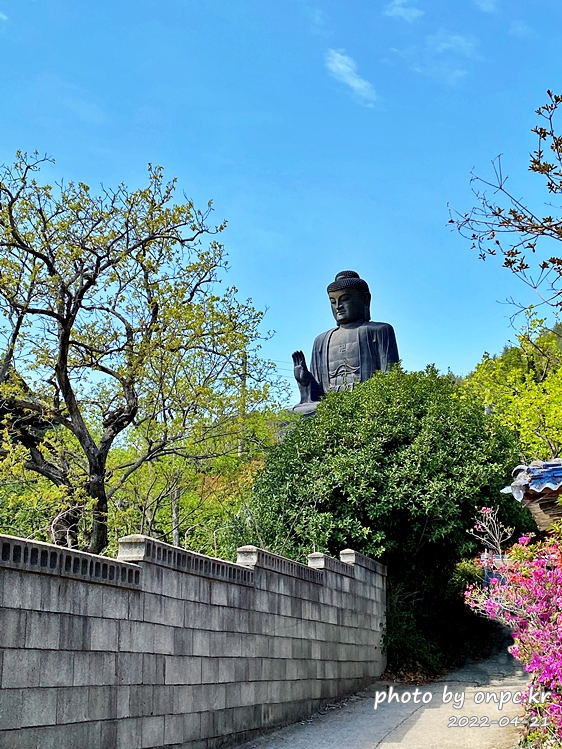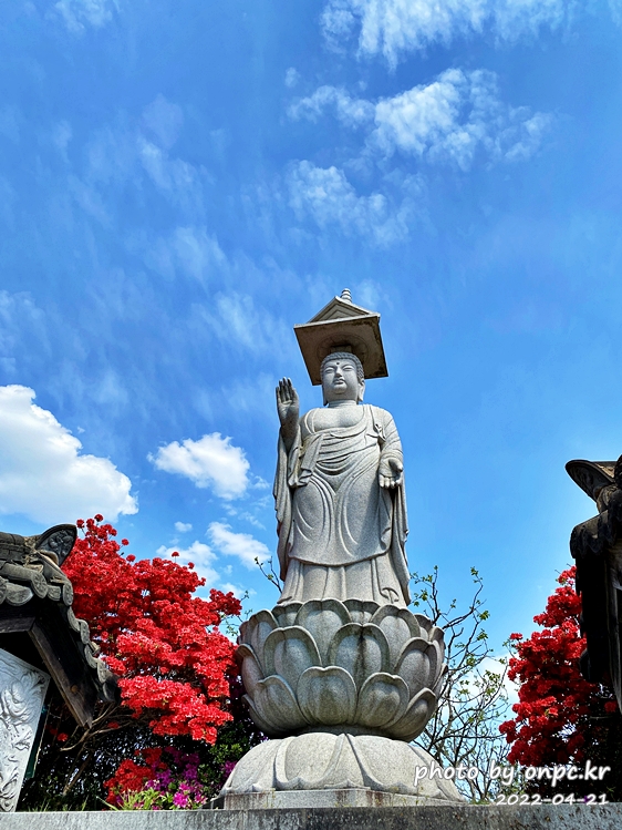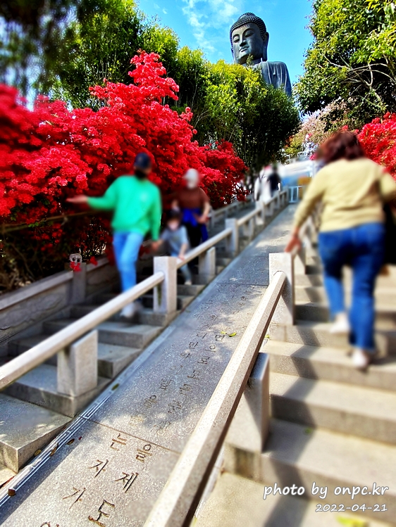 불상을 좀 더 가까이에서 볼 수 있으니 양쪽으로 철쭉이 가득한 꽃 계단을 따라 좀 더 올라가 봅니다.