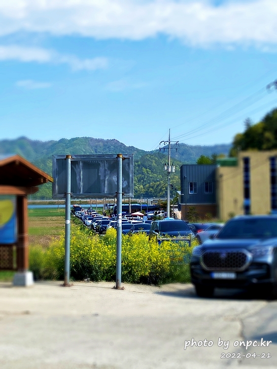 주차장에 내려오니 마을 어귀까지 자동차와 상춘객들로 가득합니다.