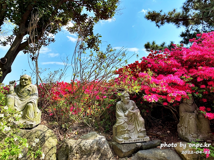 만개한 영산홍 꽃에 가려 잘 보이지 않기도 하지만 모습도 표정도 다르니 천천히 걸으며 살펴보는 재미도 있어요.