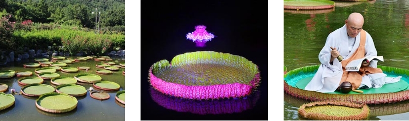 (빅토리아 연은 아프리카 아마존이 원산지로 연잎 지름이 2m의 희귀한 연잎이다)
