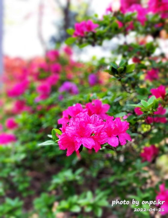 분홍색, 흰색, 빨간색 등의 형형색색 예쁜 철쭉들~ 꽃송이들이 하나같이 빼곡히 피어 풍성함에 더 아름다워요.