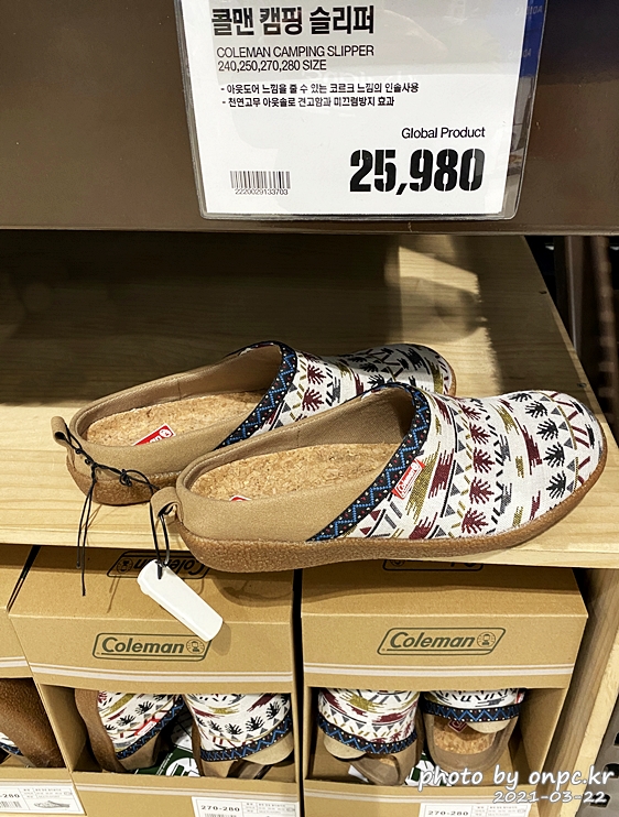 콜맨 캠핑 슬리퍼(COLEMAN CAMPING SLIPPER). 가격은 25,980원.