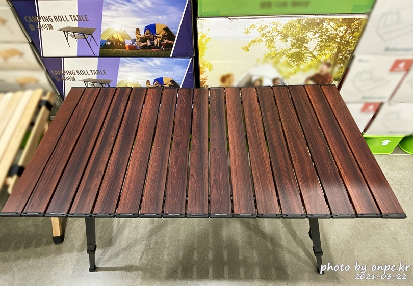 캠핑 원목 롤 테이블(CAMPING WOOD ROLL TABLE). 가격은 99,800원.