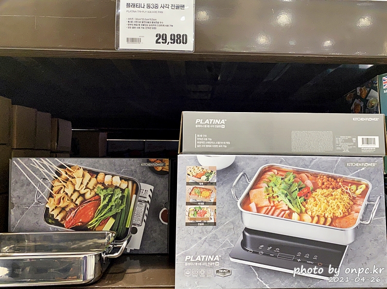 플래티나 통 3중 사각 전골팬(PLATINA TRI-PLY SQUARE PAN). 가격은 29,980원.