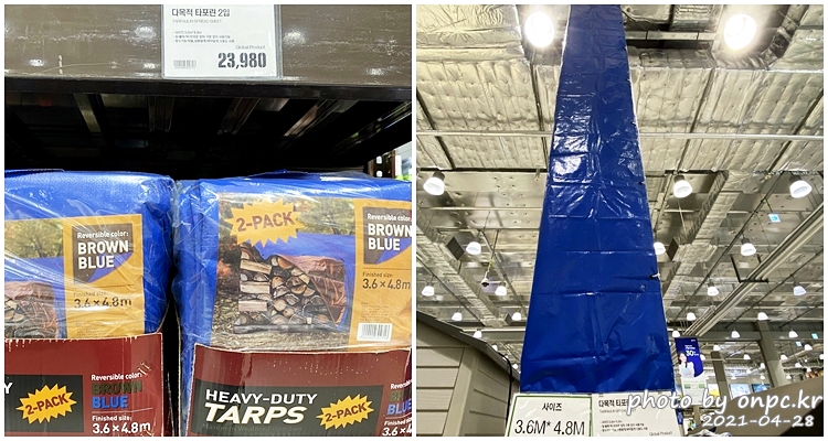 사이즈: 3.6 x 4.8m / 방수 기능 / 블루, 브라운 앞뒤 구분 없이 사용 가능 / 상품 덮개, 캠핑 방수포 등 다용도 사용 가능~