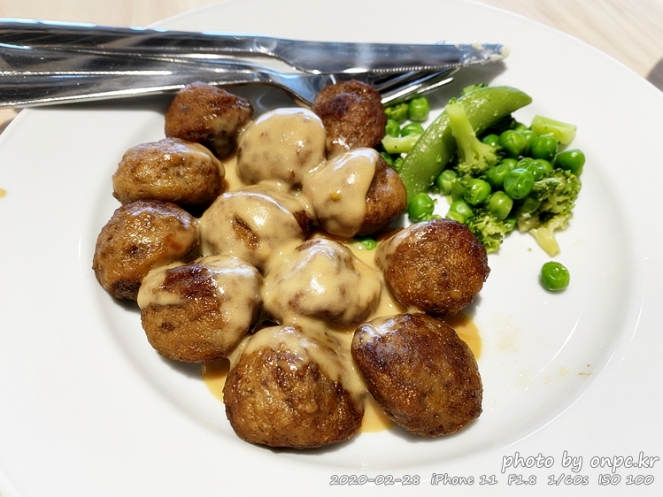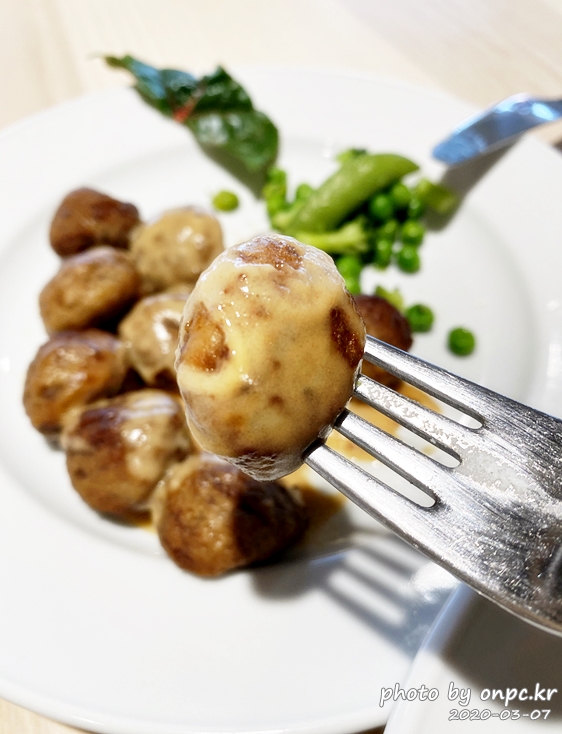 미트볼이 먼가 허전해 보이는 건 으깬 감자와 링곤베리 잼을 빼고 주문했어요~