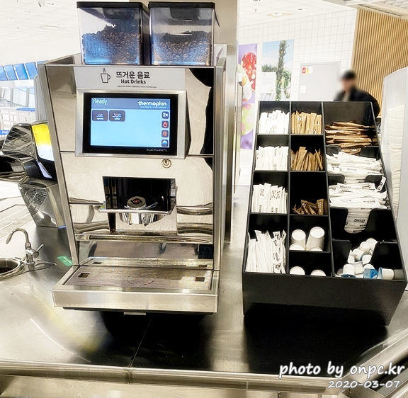 커피는 커피머신, 탄산음료는 디스펜서에서 무한 리필로 즐 길 수 있습니다.