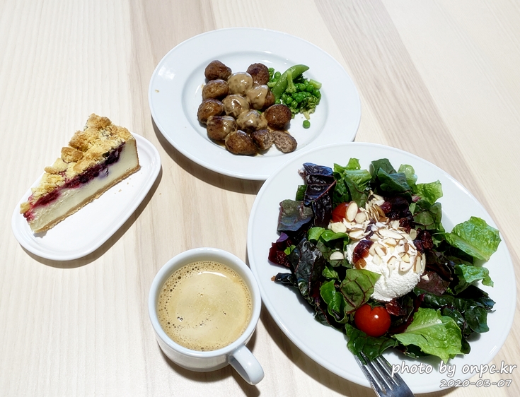 미트볼 12개, 블루베리 치즈케이크, 리코타 치즈 샐러드, 커피까지~!