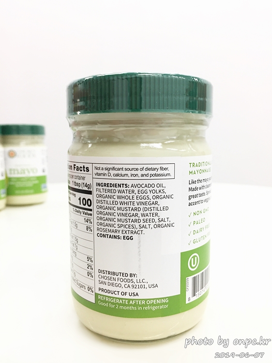 초슨 푸드 100% 퓨어 아보카도 오일 마요네즈(Chosen Foods 100% avocado Oil based Mayo)