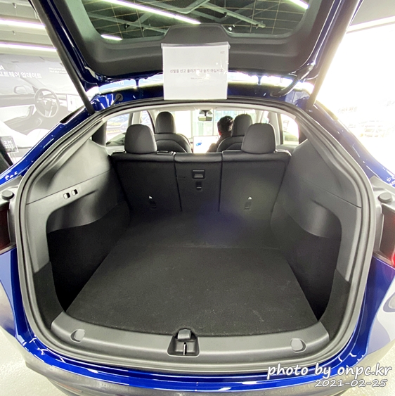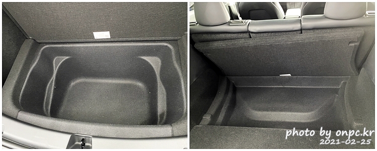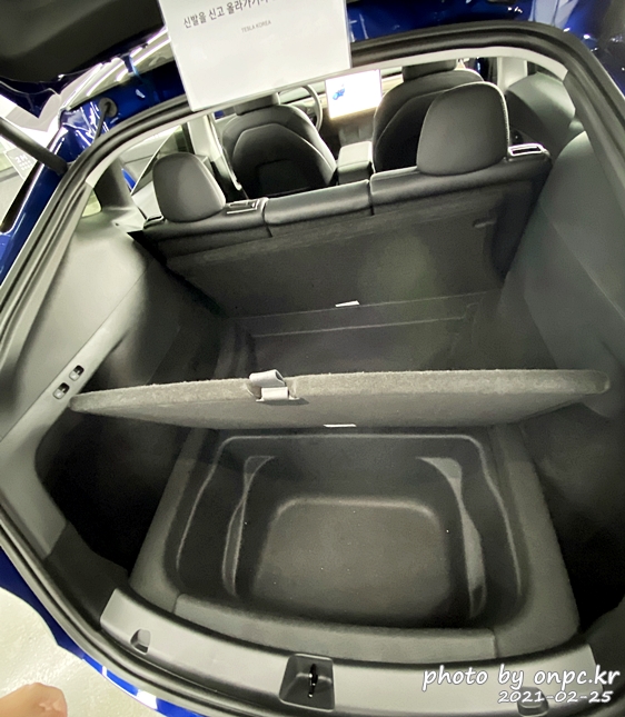 전기차만의 특성을 살려 엔진이나 변속기가 차지하던 공간을 활용해서 트렁크 밑의 넓은 수납공간이 보이네요.