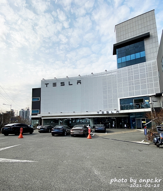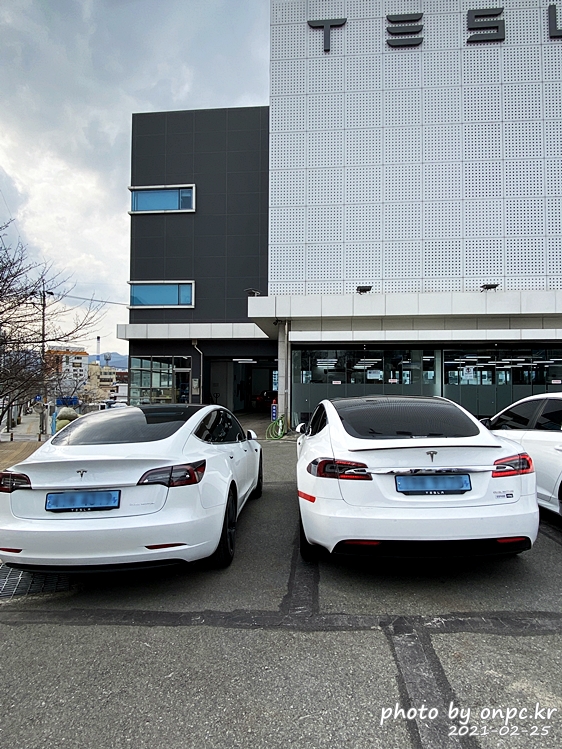 Tesla 부산 연제 스토어&서비스센터 건물과 앞 주차장에서 만나는 모델  S, 3, X~