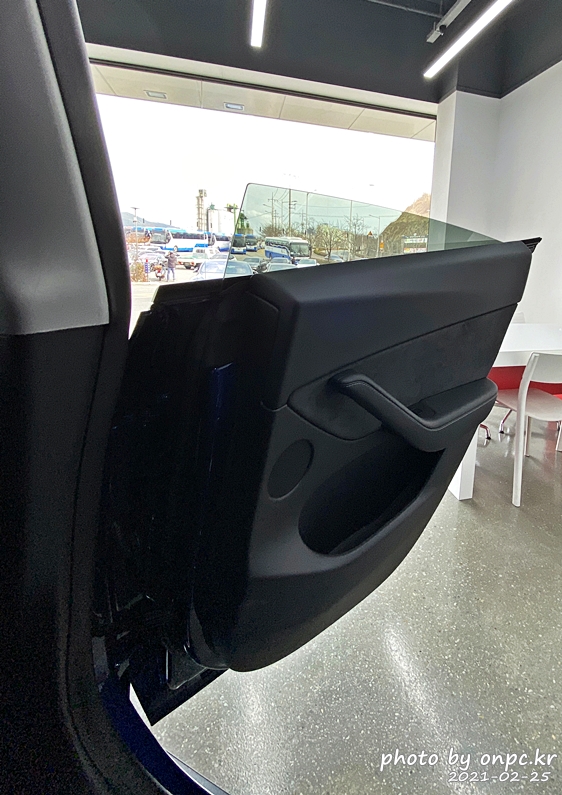 테슬라의 도어는 프레임리스 도어로 위 사진에서 처럼 창문을 잡아주는 틀이 없어요.