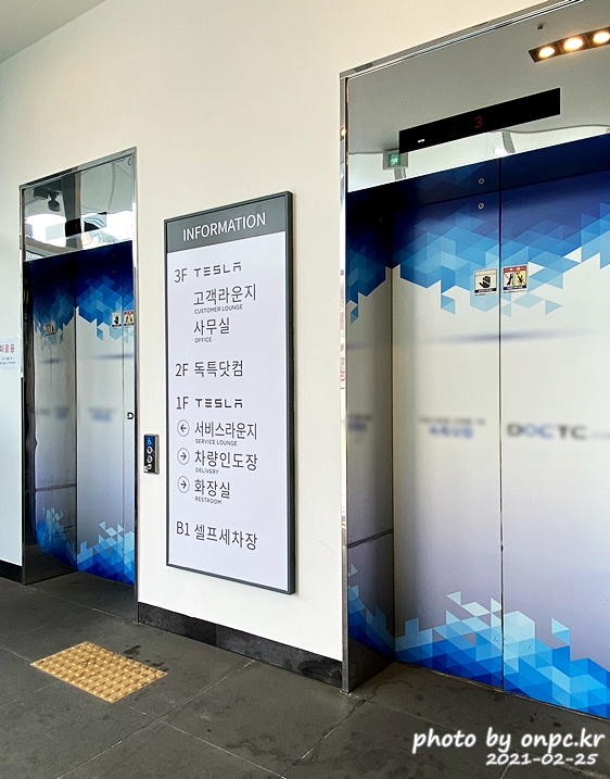 1층은 테슬라 서비스 라운지, 차량 인도장 3층은 테슬라 고객 라운지와 사무실이 자리하고 있어요.