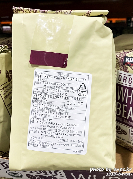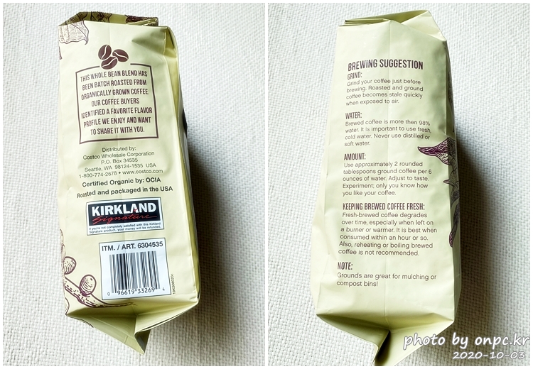 그리고, 이번에 구입한 코스트코 자체 브랜드 커클랜드 시그니처 유기농 원두커피도 소개합니다.