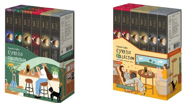 구성: 4종- 에스프레소, 룽고, 아메리카노로 구성, 2종- 진한 에스프레소 캡슐로만 구성