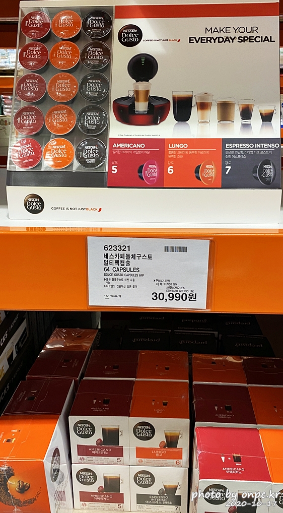구성: 아메리카노(2팩, 32 캡슐), 룽고(1팩, 16 캡슐), 에스프레소 인텐소 (1팩, 16캡슐)