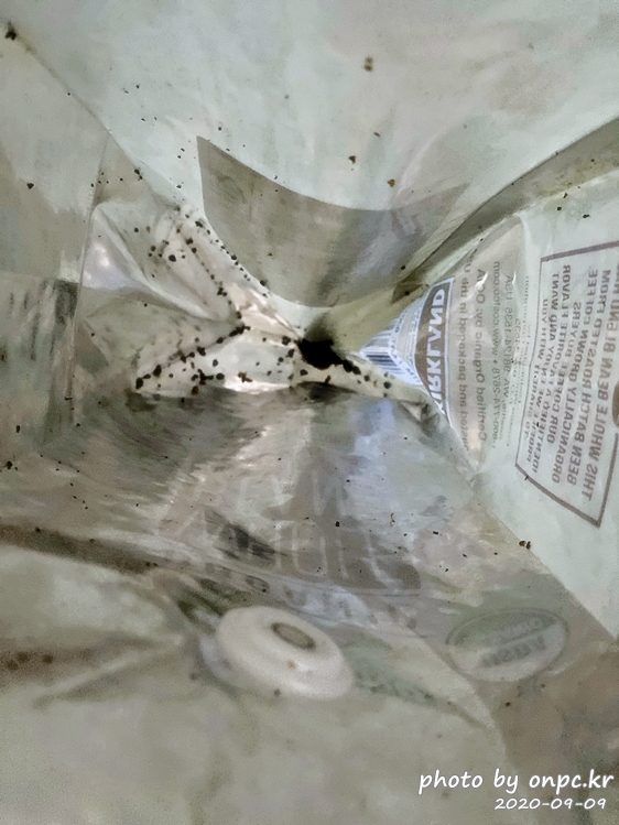 비닐 안쪽 바닥을 살펴보면 커피 원두의 부스러기도 적게 나오고 깔끔합니다.