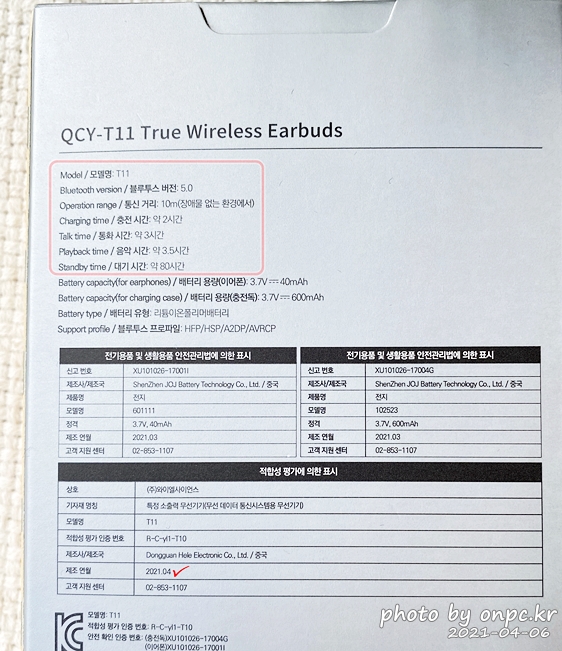 직구로 구매한 QCY-T10과 다른 건 국내 정식 발매 제품이라 사용설명서는 모두 한글로 되어있고 A/S도 가능합니다.
