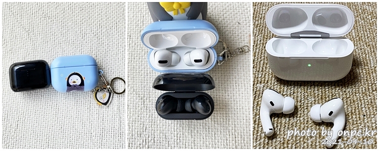 에어 팟 프로에는 펭수 케이스가 추가로 끼워져 있지만 크기는 확실히 QCY-T11이 작고 가벼워요~