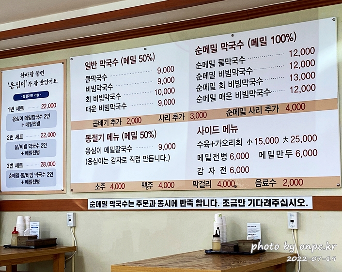 막국수는 50프로, 100프로 메밀 함량에 따라 골라서 먹을 수 있는 점이 좋습니다!!